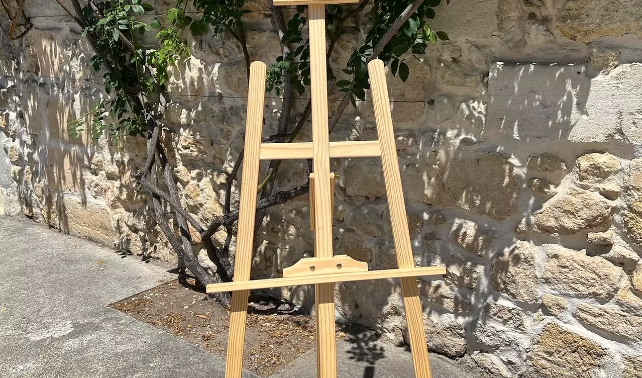 Ce chevalet en bois de pin couleur marron clair est léger et pliable.